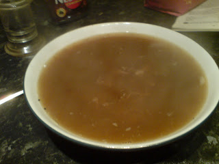 Much easier! You’ve done the hard work. Using a spoon, skim off the fat that has risen to the surface and solidified. Reheat the soup to simmering point and add 5 tablespoons of port. This makes all the difference. Don’t dare miss it out. Check the seasoning, you can be pretty bold I reckon. If it is not beefy enough, cheat as I did and add a small amount of stock concentrate.