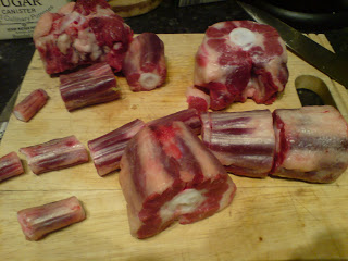 I got the oxtails from W H Frost in Chorlton – a very good butcher. I chatted to the man briefly and he mentioned that he could pretty much get anything I want in as long as I order it in plenty of time. Good man! The butcher in Levenshulme is good for the basics, but it’s nice to see there’s somewhere I can get the weird and (not so) wonderful stuff.