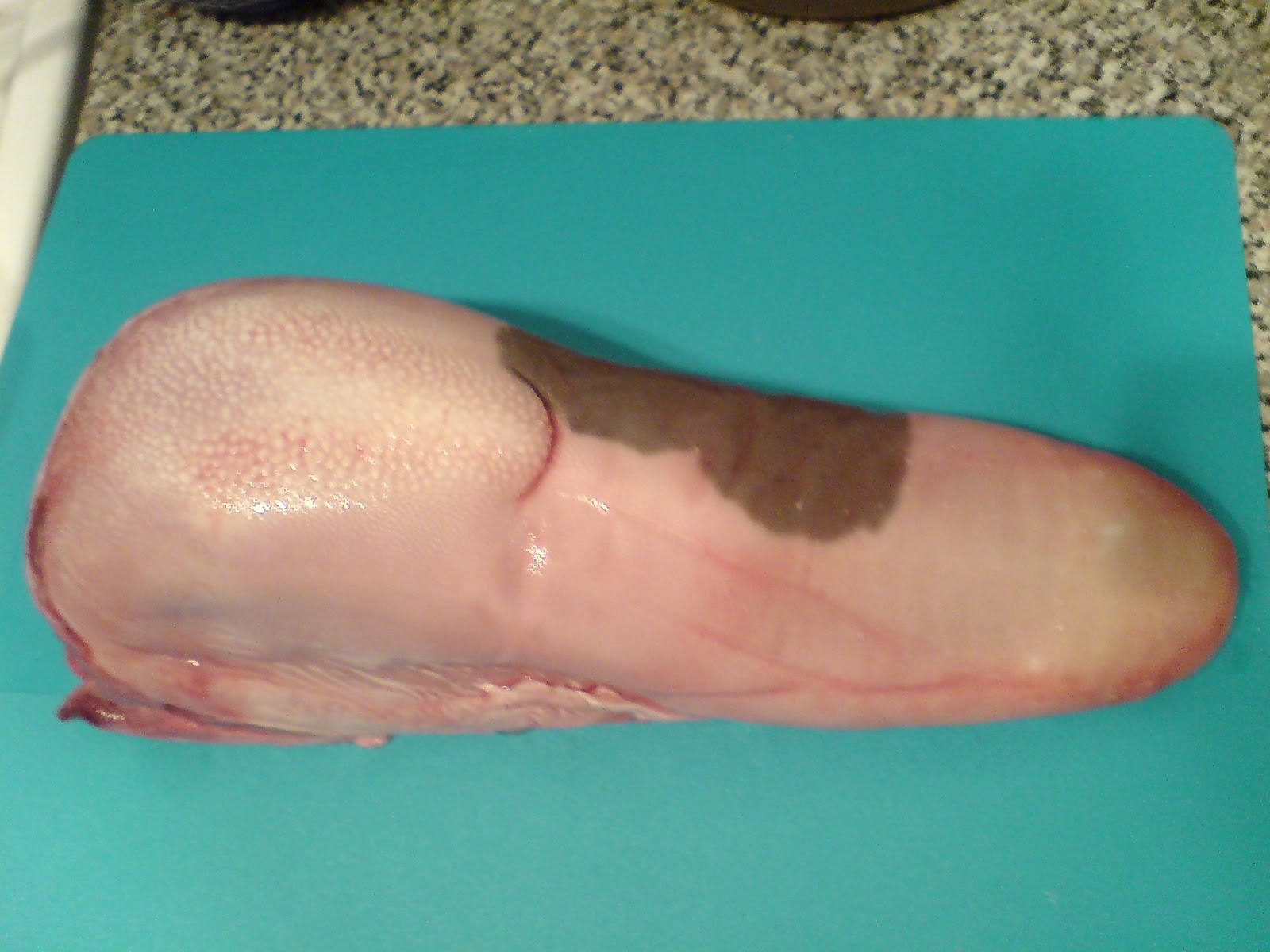 Hello there Grigsoners! No, I’ve not died, I have simply been a lazy bastard. I am going to stop apologising for my blog-tardiness and try my very best to pull my finger out. All that said, I have been preparing this recipe on the sly for the last few days. I went to Central Market with Gerda from the lab a while ago and found that quite alot of the ingredients that are tricky to get hold of in the UK are actually much easier to get hold of here in Texas. In the meat section, I happened upon an ox tongue and I knew that there are quite a few recipes using ox tongue specifically so I thought I’d grab it and do something with it later.