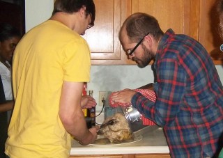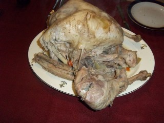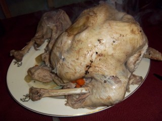 Forced meat is simply meat mixed with other ingredients to ‘force’ it to go further. I made forcemeat balls a while back (click here for the post). The recipe given here is a jazzed-up version from French chef Antoine Carême’s 1833 book L’art de la cuisine franҫaise au dix-neuvième siècle. According to Grigson, he praises it as an excellent English dish. Jane suspects he found out about it when he lived and worked in London as the Prince Regent’s chef. The changes he made were simple: lose the forcemeat, add some nice mushrooms and serve with bread sauce (see here for recipe) as well as some crunchy browned breadcrumbs.
