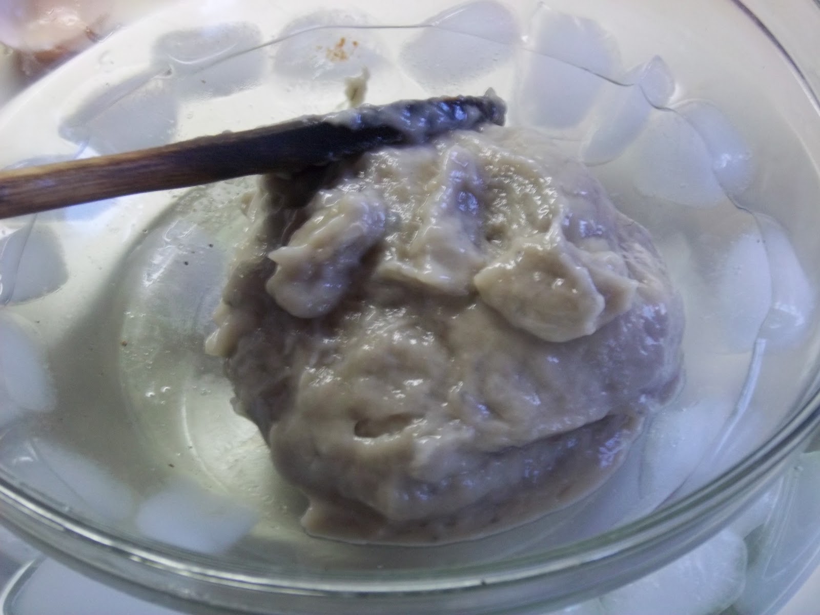 In the case of veal sweetbreads, this took about 15 minutes. Remove the sweetbreads and allow to cool a little before removing any membranes or gristly bits. You must be careful here – Jane makes a point of mentioning this and she was right – don’t let too much of the sweetbread come away with the membranes. If using lamb sweetbreads, be extra careful, as you’ll end up with nothing! Press the sweetbreads by pressing a plate on them until they cool.