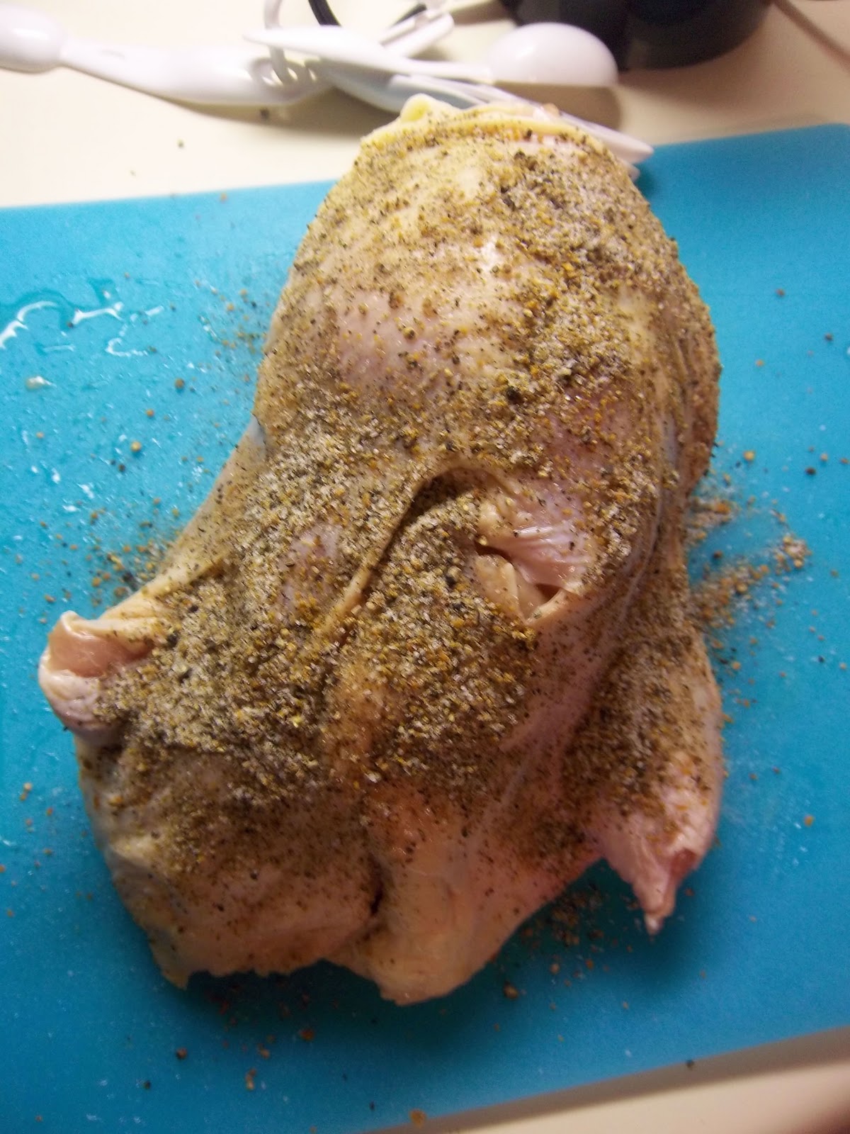 Now place the tongue in the chicken and rub in around a third of the spice mix into the chicken…