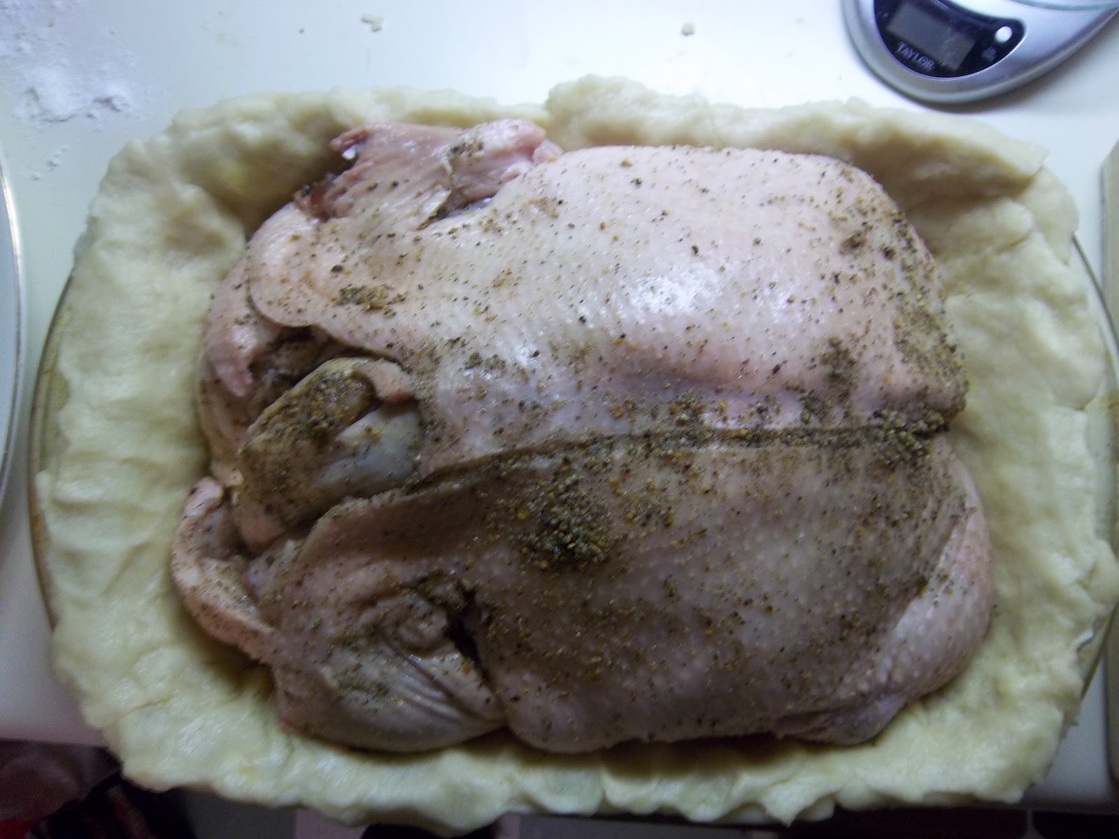 before gingerly wrapping fitting inside the goose. Place the goose in the pie and rub in the remainder of the spice and salt mix.