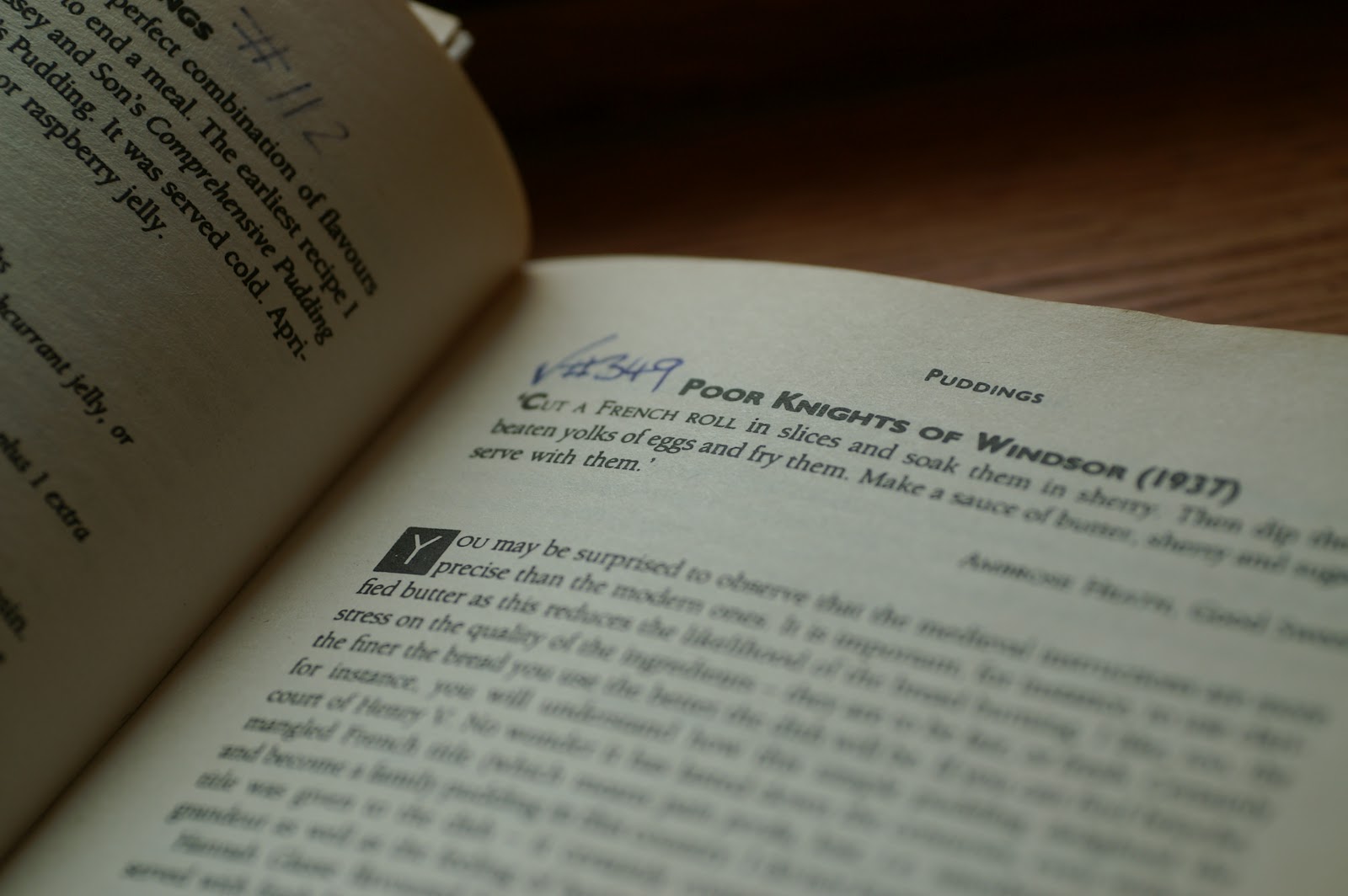 #349 Poor Knights of Windsor (1937). It’s not very often that I make a recipe from the book just for myself, but this one I did. I thought it would be awful – I don’t usually like alcohol in desserts, but I was so, so wrong! It wasn’t as rich or as heady as I expected, the secret was to make the sauce very sweet and to liberally sprinkle the brioche with the sherry, rather than soak it. Very good 7/10.