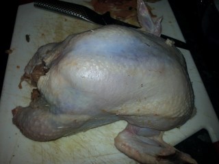 Next, bone a 5 to 7 pound chicken. This isn’t as difficult as you think. I’ve given instructions already on how to do this in the post #322 To Make a Goose Pye. In fact this is easier because the chicken can be first split down the back with poultry shears or a hefty knife. Of course, you could ask your butcher to do it – you might have to flutter your eyelashes a little though!