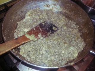 To make pease pudding, you first of all need to simmer a pound of dried green peas– whole or split, it doesn’t really matter – in enough water to just cover them until soft and tender. The times here can vary greatly – about 45 minutes to an hour for split peas, at least 2 hours for whole peas. It also worth mentioning that the age of the peas will affect the cooking time – old peas may need soaking overnight in water with a teaspoon of bicarbonate of soda. If you do soak them overnight, drain away the liquid they were soaked in before cooking in fresh water.