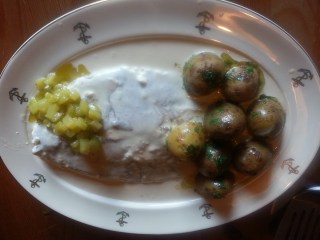 #376 Eliza Acton’s Sole Stewed in Cream. I loved this. The fish was lovely and moist and it flaked away from the bone very easily. The sauce was not as rich as you might expect, and its mild creaminess complemented the fish very well. There was also the added bonus of finding a large and handsome roe within the sole which also ate very well. Very good and very simple 8/10