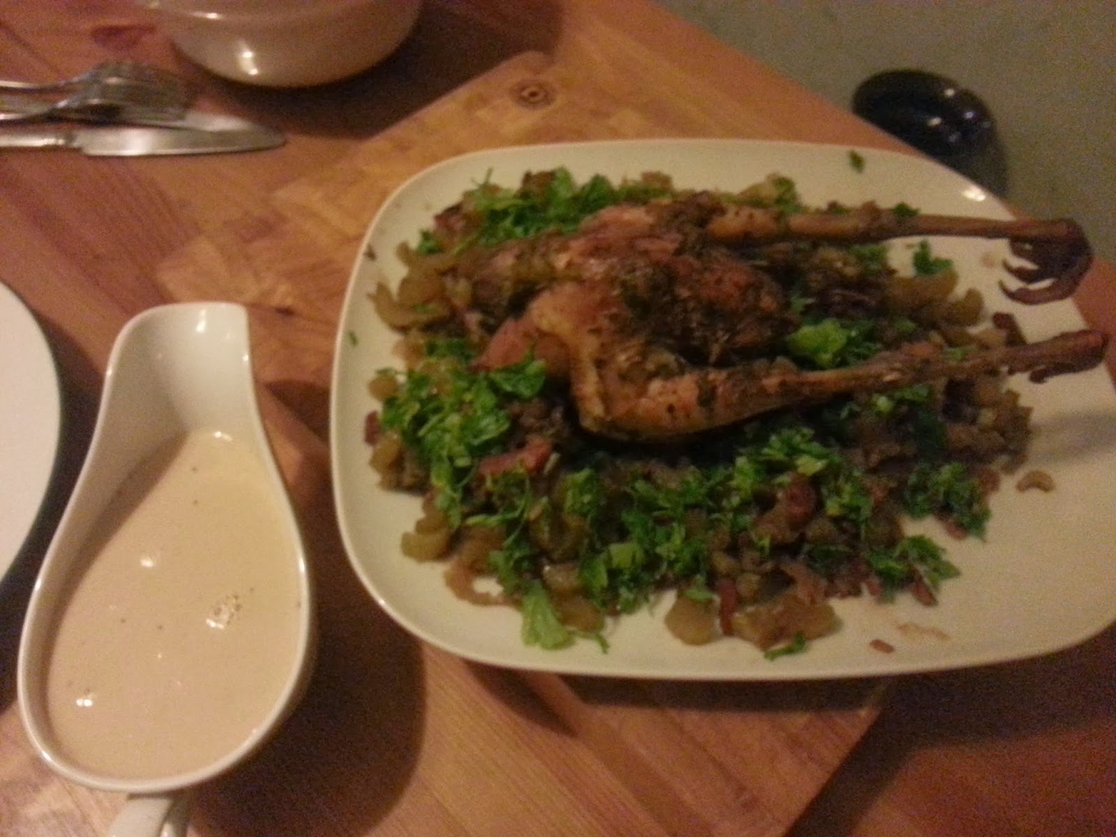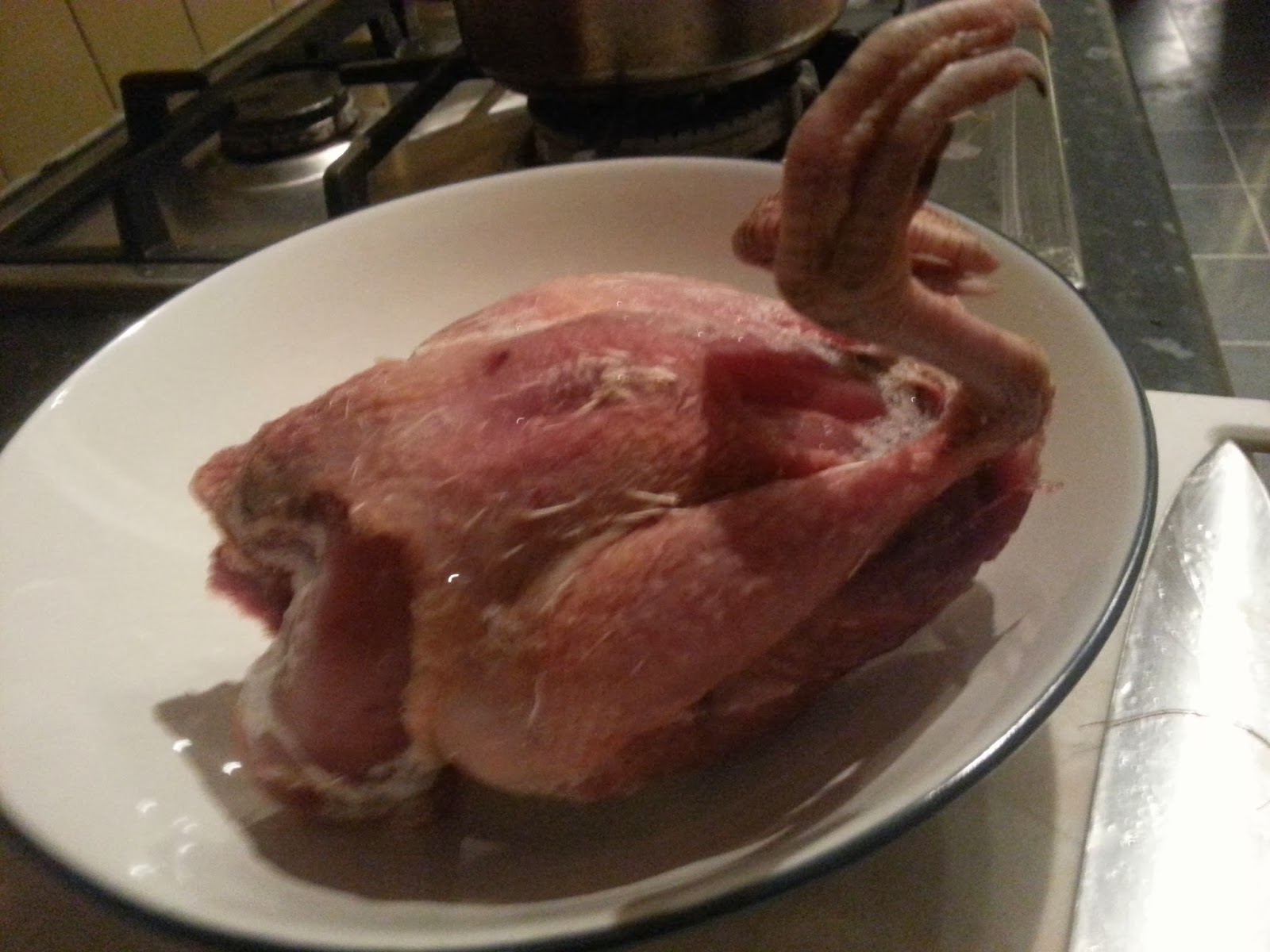 I plucked and drew my own pheasant, that way I could use its giblets for the sauce. For some reason, I decided that I should leave the feet on.
