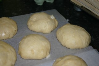 Somehow place the pieces of dough on baking sheets lined with greaseproof paper, cover with plastic bags and allow to rise again.