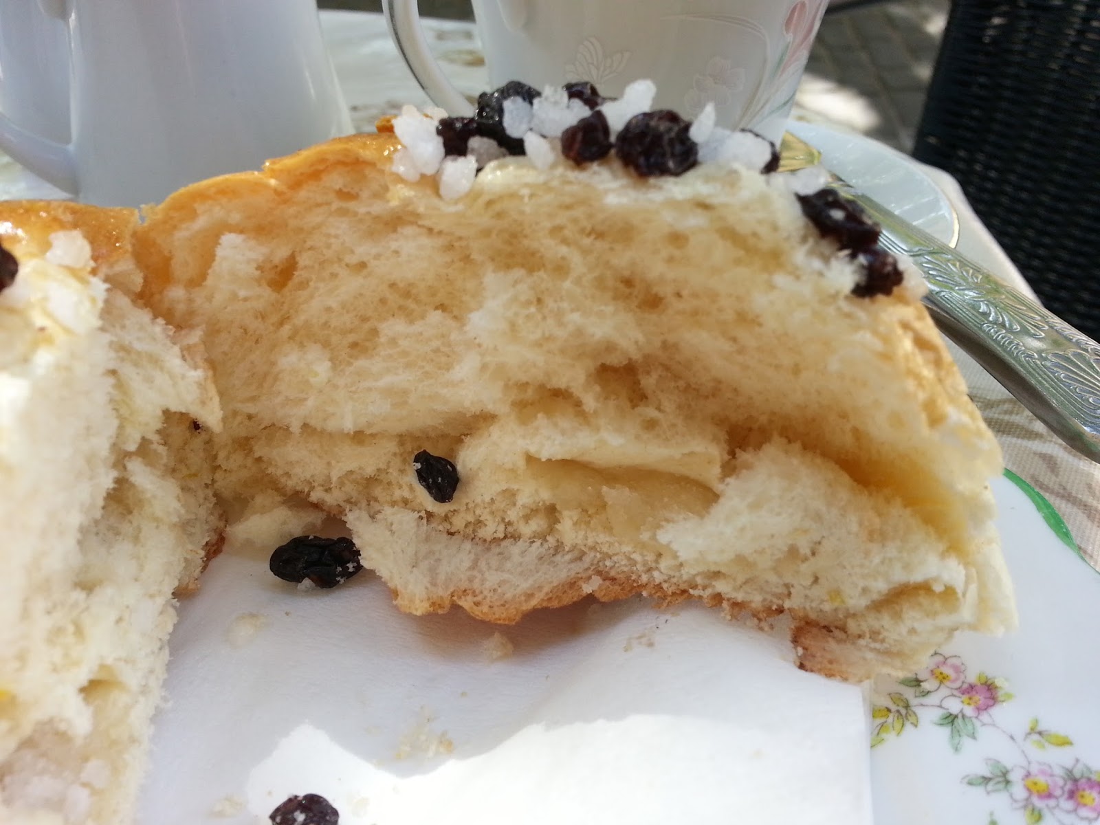 Here’s the recipe that appears in English food. It contains no currants, which I think are as essential as the sugar lumps: