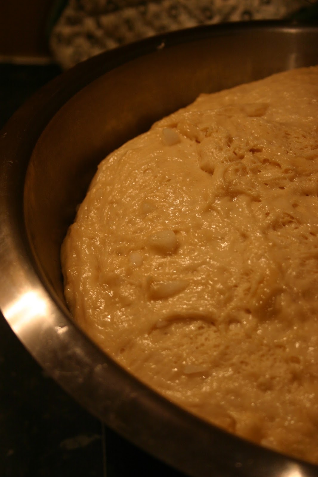 Jane says for us to knead this dough together; good luck with that, the mixture is more a batter than a dough. I did this impossible task in my Kitchen Aid. Cover and leave to prove again until its double the size, which could take 90 minutes or longer with such an enriched dough weighed down with so many goodies.