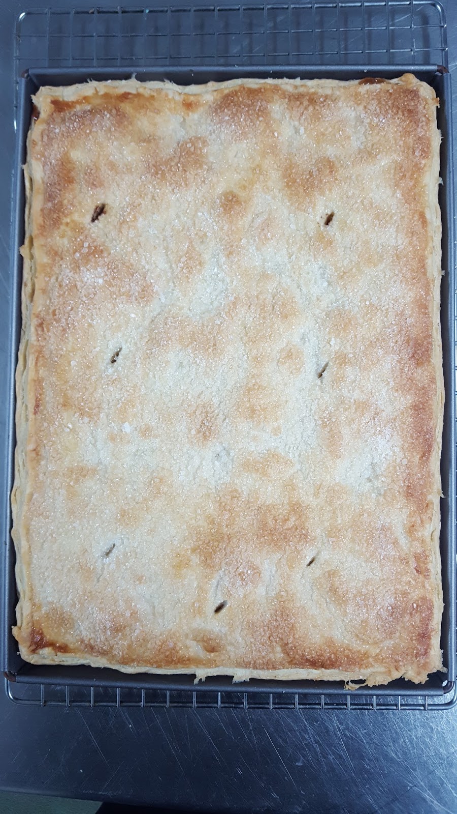 #429 Cumberland Currant Cake. Well I ate this oblong of deliciousness both hot and cold, and it was delicious. The pastry was very rich and the filling sweet yet still tart from the cooking apples; not unlike a giant, square mince pie; and seeing as I’m a mince pie fan, it’s getting a very good mark. When I return to trade at Levenshulme Market later this month, I shall be bringing some of this to sell. Delicious! 9.5/10.