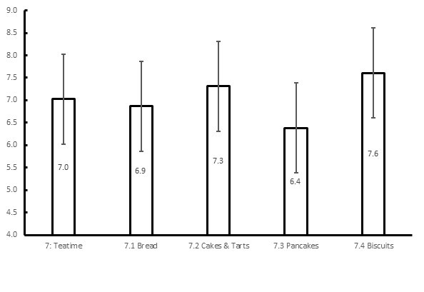 The chapter scored an overall mean score of 7.0, which seems pretty average for the book so far. For those who care (and I know none of you do), here’s a little bar chart showing the mean scores for the chapter as a whole and then the separate subchapters. There are even error bars, don’t say I don’t treat you.