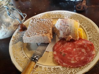 #434 To Pot Ham with Chicken. Rather a subtle one this one, but no worse for it. Many of the other recipes are quite strongly flavoured, so this is a good introduction. The combination of salty ham and bland chicken is a good one, and it was great spread on toast with a little medlar jelly. As mentioned above, a great way to use up left-over meat at Christmastime. 7/10