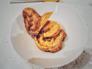 As always, whenever I make choux buns, they turned out all different sizes, all looking like clouds rather than perfectly domed profiteroles. However, they were hollow so good enough for me.