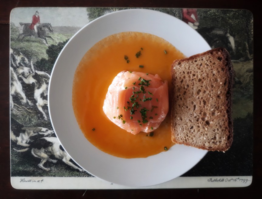 Back in the early days of the blog, I remember shuddering at some of the recipes; there were lots of unfamiliar ingredients – sprats, eels, bloaters – as well as a lot of smoked salmon, which I thought I did not like until I bought some of high quality as instructed by Jane. So unfamiliar was I with the ingredients I was not even sure #395 Red Herrings actually existed. It was difficult tracking them down, but I managed to find one supplier that still sold them. That supplier has sadly gone out of business, so I’m not sure if one can buy red herrings in Britain anymore so there’s a good chance I may have caught a taste of a food just before its extinction. If that is the case, I am glad I managed to feature it in soufflé form on a pop-up restaurant menu. Red herrings may be lost to us, but many traditional cures are still here alive and well, and what is more it’s the artisan producers who are making them and sticking to old methods and keeping them alive for us to enjoy today, canned and frozen fish notwithstanding.
