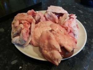 To roast the chicken, I followed my usual method. I have written about my method of roasting a chicken on my other blog, so I shan’t repeat myself. The only difference being that I didn’t put butter under the breasts, just over them, and the legs. I used about 50 g, then seasoned it and basted it with 6 tablespoons of dry sherry after 40 minutes and then every 30 minutes thereafter.