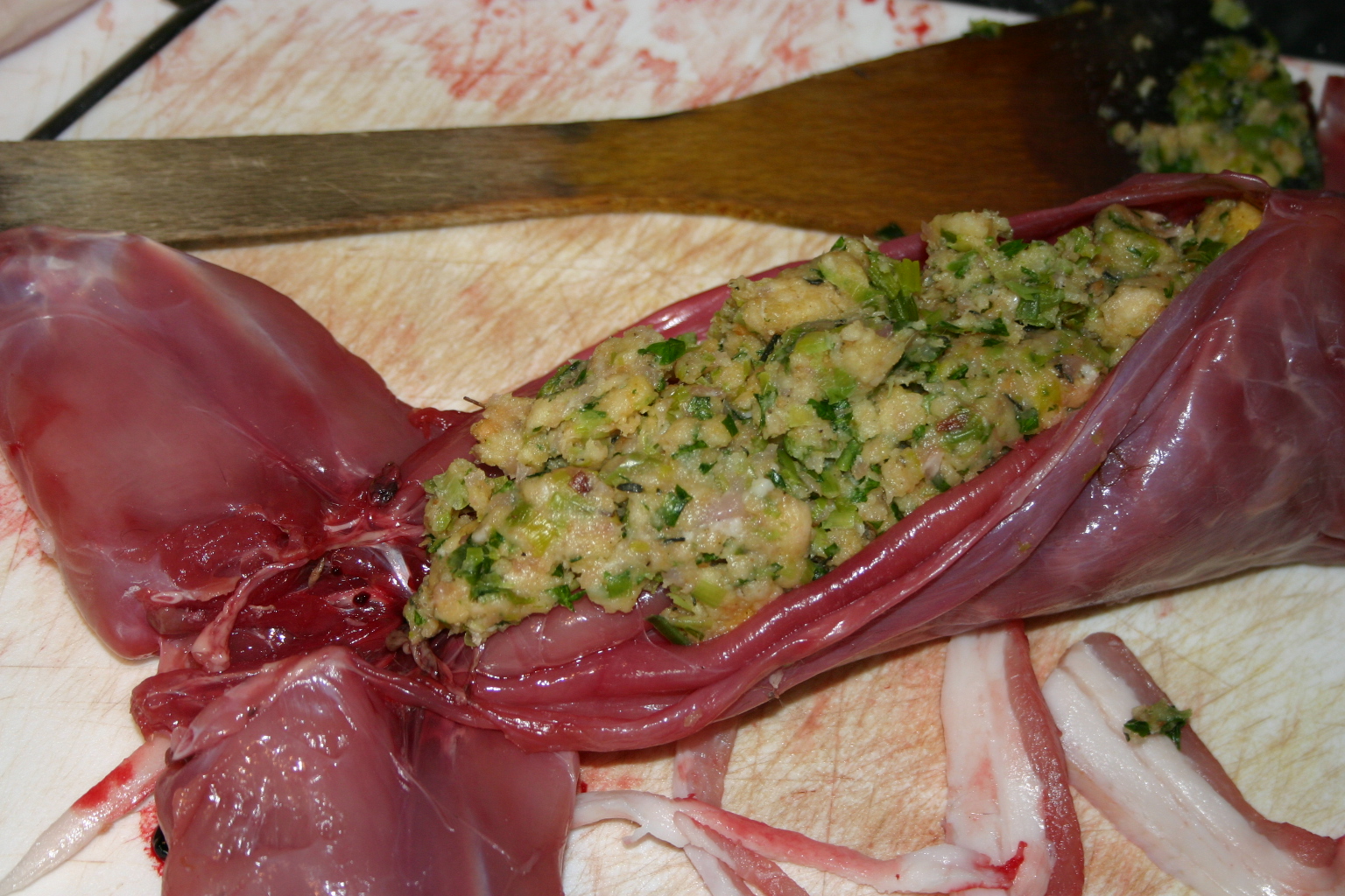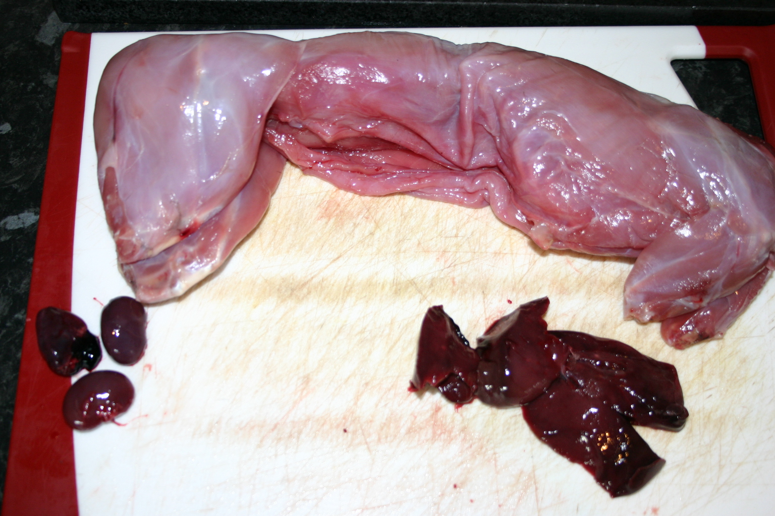 I’d heard of jugged hare before and had always assumed that ‘jugging’ meant that some strange spices were added, but it simply means that it is cooked in the jug. The idea being that the hare can cook away in the jug that is, in turn, in a pan of simmering water. The way of cooking goes back to when people had to cook over their hearths. Jugged hare therefore has gone out of fashion because we make it into a casserole or stew (as in this recipe here) in the oven. I bought the hare from Shaw meats a few months ago and had had it stowed away in the freezer for quite a while, so it was perfect as the main course of my emptying-the-cupboards themed dinner party. Here’s how to jug a hare (or a large rabbit).