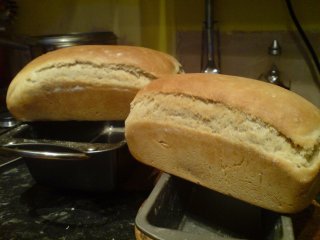 Knock back the risen dough and briefly knead, either by hand or with a dough hook, then place in a large greased bread tin that has a three to three-and-a-half pint capacity. Cover once more and allow to prove until it has risen up to the top of the tin. Place in an oven preheated to 230⁰C for 15 minutes and then lower the heat to 200⁰C for a further 15 minutes. Remove the loaf from the tin, invert it, and then place it back in the oven for a final five minutes so that the crust can crisp up.
