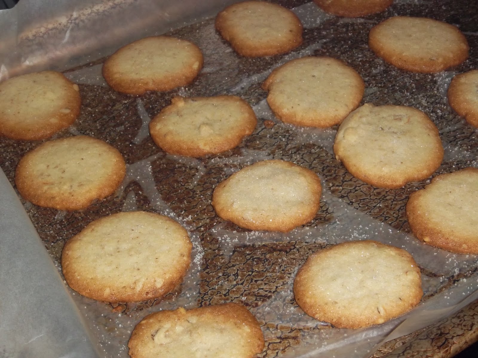 The blog has been a little quiet of late because of a combination of business and broken car. This means that I’ve not been able to explore St Louis’s butcher’s shops, markets et cetera anywhere near as much as I’d hoped this month. However, there are still a few simp recipes to do in the book and this is one of them. I had hoped to not do any recipes from the Teatime chapter of the book because I have done so many and there are so many under-represented chapters. However, beggars cannot be choosers, so I made these walnut biscuits that are very similar to the sugar thins I made ages ago. Don’t feel guity about eating a load of these either; walnuts have more antioxidants than any other nut. You might end up a fat little piggy, but you’ll have none of those pesky free radicals aging the skin of your three chins.