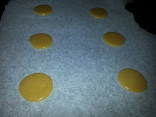 Preheat the oven to 200⁰C (400⁰F) whilst you get on with spooning out the mixture onto baking sheets. The best thing to do here is to cover two large baking sheets with greaseproof paper and to spoon out sparsely teaspoons of the mixture; these things really spread so you’ll only want 4 or 6 spoonsful per sheet. Make sure your spoons are small, equal in size and neat; I found that using a melon-baller helped here.