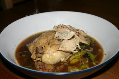 It isn’t news to anyone that the vast majority of chickens are raised in filth and squalor, but it’s not all bad, and there still places where chickens are raised free range – and I mean truly free range, not technically. Such fowls can be found at farmers’ markets across the country. Personally, I worry about the freedom of the bird other whether it is organic. A good example of this is Packington who farm their chickens (and cockerels) the traditional way. They are more expensive, and therefore I eat chicken less. It should be the way of things, after all. They have an excellent flavour that is essential for when a chicken is to be poached, say, for example, when preparing #225 Cockie-Leekie.