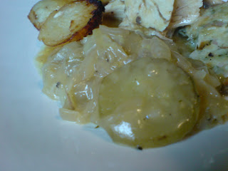 Jane asks for 10 to 12 small courgettes. If you can’t find small ones, then buy the equivalent in regular ones. I guessed at three. If you can find small ones, halve them, if they’re a bit bigger quarter them lengthways and in half crossways. Fry them gently in a tablespoon of butter and a small, finely chopped clove of garlic (we are looking for a suspicion of garlic here). Season with black pepper. Place the courgettes in a pile beside the bitter gourds.