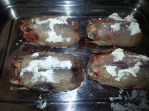 In English Food, Jane opines on how ‘bacon was once our passion’ but is now outsourced to the Danish who turned pig farming into a real industry well before British farmers. As a country that in general prefers cheapness over quality, often discounting false economies, means that bacon filled with brine and injected with smoke flavouring has become the norm. So many of us have never eaten proper dry-cured butcher’s bacon, and I am glad to have been educated so well by Jane in the preparation of these foods that are considered very British – and the bacon sarnie is certainly one of those foods! And it’s not just a ‘cheerio’ to shrinking, scummy bacon: it’s a big ‘see you later’ to gammon and ham made from reformed offcuts, similarly injected with brine and additives.