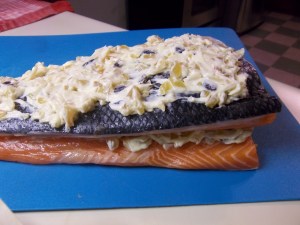 This is a recipe that is inspired by the medieval love of combining fish and candied sweetmeats. Griggers says it is a ‘brave, but entirely successful blend’. We’ll see. Large medieval banquets had to contain dishes with lots of spice; after all how else could you display your vast wealth other than to use that new and exciting new spice, sugar? When first brought to Europe from India, sugar was considered a spice like any other and therefore medicinal. It lost its rank as a spice once it gained popularity as a more general addition to the dinner table; albeit a giant banqueting table.