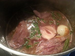 It needed two people to get the pie safely in the oven. It’s important to have a high heat at first, so the pastry can seal up. My pie started to collapse as the front and leak butter because the heat couldn’t get round. (I found out later that that was prevented by tying card or metal around the pie, rather like a corset, keeping things from oozing out.)