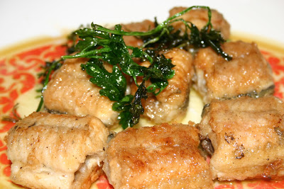 Jane suggests eating the chine with a vinaigrette, bread and butter, and salad. I also tried it sprinkled with a vinegar and sugar dressing (approximately a 2:1 ratio) as suggested by Rachel.