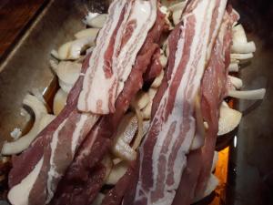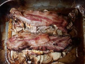 In English Food, Jane opines on how ‘bacon was once our passion’ but is now outsourced to the Danish who turned pig farming into a real industry well before British farmers. As a country that in general prefers cheapness over quality, often discounting false economies, means that bacon filled with brine and injected with smoke flavouring has become the norm. So many of us have never eaten proper dry-cured butcher’s bacon, and I am glad to have been educated so well by Jane in the preparation of these foods that are considered very British – and the bacon sarnie is certainly one of those foods! And it’s not just a ‘cheerio’ to shrinking, scummy bacon: it’s a big ‘see you later’ to gammon and ham made from reformed offcuts, similarly injected with brine and additives.