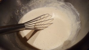 Remove the meat from the oven and keep warm as you prepare the gravy: make a roux by cooking an ounce of butter in a saucepan until it turns golden brown, then stir in a tablespoon of flour. Mix and cook the roux out for a few minutes, then pour in the cooking juices (skim away the fat first). Deglaze the roasting pan with ¾ pint of lamb stock – made either from the trimmings or from a good preparatory brand – and add to the gravy. Add the liquids in stages to avoid lumps. Season with salt and pepper. Strain into a gravy jug.