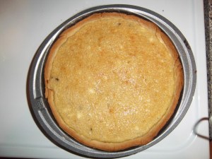 It needed two people to get the pie safely in the oven. It’s important to have a high heat at first, so the pastry can seal up. My pie started to collapse as the front and leak butter because the heat couldn’t get round. (I found out later that that was prevented by tying card or metal around the pie, rather like a corset, keeping things from oozing out.)